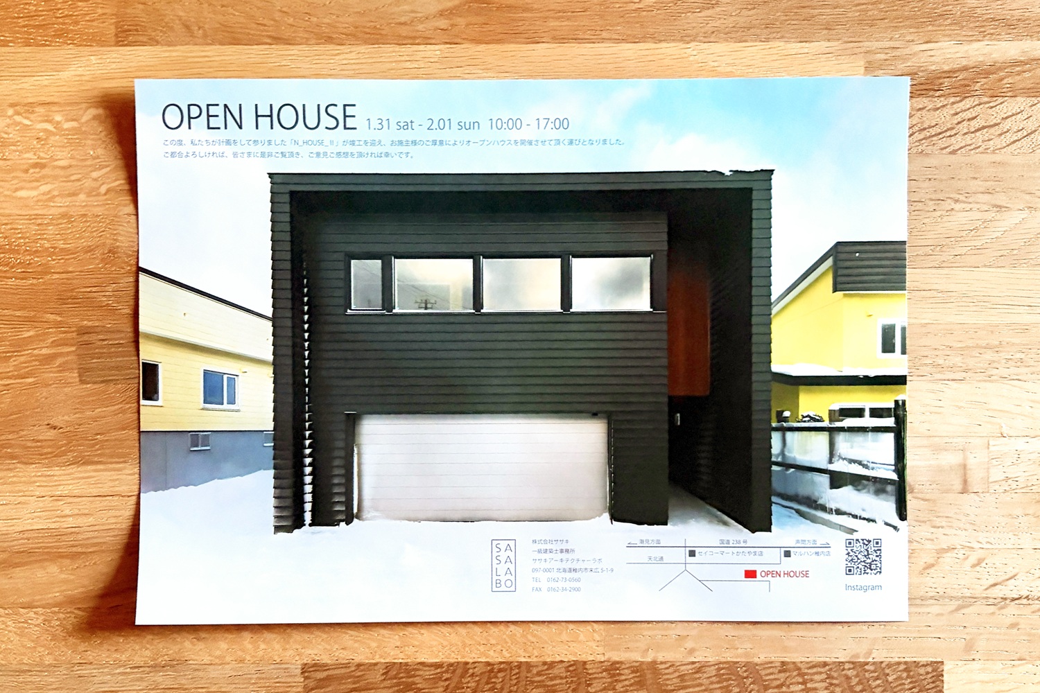 場所は、稚内市富岡3丁目28番の区画内、奥の方にございます。チラシにも地図を掲載しておりますが、Google Map等で上記区画を検索していただき、「オープンハウス」ののぼりを目印にしてお越しください。ぜひこの機会にご覧いただき、ご意見ご感想をいただければと存じます。当日はスタッフ一同お待ちしております!